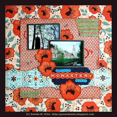 This is another layout with photos from my trip to Saint Petersburg, Russia. The title is "Spring Monastery Visit," and the journaling reads: "Hard to believe that Alexander Nevsky Monastery is only one metro stop away from the city center! It's so quiet and peaceful there."